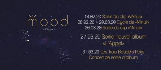 Nouvel album “L’Appel” MOOD : sortie prévue à la fin du confinement, printemps 2020 ! Concert de Sortie d’album @Les Trois Baudets reporté le mardi 9 juin 2020 “Minuit” – MOOD Extrait de l’album “L’Appel” – @2020 L’Autre Distribution – 𝖩𝖾 𝗏𝗈𝗎𝗌 𝖽𝖾́𝖽𝗂𝖾 𝖼𝖾 𝖼𝗅𝗂𝗉 𝖺̀ 𝗍𝗈𝗎𝗍𝖾𝗌 𝖾𝗍 𝗍𝗈𝗎𝗌 , 𝖺𝗏𝖾𝗇𝗍𝗎𝗋𝗂𝖾𝗋.𝖾.𝗌 𝖽𝖾𝗌 𝗍𝗋𝖺𝗏𝖾𝗋𝗌𝖾́𝖾𝗌 𝗂𝗇𝗍𝖾́𝗋𝗂𝖾𝗎𝗋𝖾𝗌, 𝖽𝖾𝗌 𝖼𝗈𝗇𝗍𝖾𝗌 𝗂𝗇𝗂𝗍𝗂𝖺𝗍𝗂𝗊𝗎𝖾𝗌 𝖽𝖾 𝖼𝖾 𝗉𝗋𝗂𝗇𝗍𝖾𝗆𝗉𝗌 𝟤𝟢𝟤𝟢. 𝖠𝗎𝗑 𝖼𝗒𝖼𝗅𝖾𝗌 𝖽𝖾 𝗍𝗋𝖺𝗇𝗌𝖿𝗈𝗋𝗆𝖺𝗍𝗂𝗈𝗇𝗌 𝗉𝗋𝗈𝖿𝗈𝗇𝖽𝖾𝗌 𝗊𝗎𝖾 𝗇𝗈𝗎𝗌 𝗏𝗂𝗏𝗈𝗇𝗌, 𝖺̀ 𝗅𝖺 𝗆𝖺𝗀𝗂𝖾 & 𝗅’𝗂𝗆𝗉𝖾𝗋𝗆𝖺𝗇𝖾𝗇𝖼𝖾 𝖽𝖾 𝗅𝖺 𝗏𝗂𝖾, 𝖺𝗎𝗑 𝖼𝗒𝖼𝗅𝖾𝗌 𝗅𝗎𝗇𝖺𝗂𝗋𝖾𝗌 & 𝗌𝗈𝗅𝖺𝗂𝗋𝖾𝗌, 𝖽𝖾 𝗆𝗈𝗋𝗍𝗌 𝖾𝗍 𝖽𝖾 𝗋𝖾𝗇𝖺𝗂𝗌𝗌𝖺𝗇𝖼𝖾𝗌 𝗌𝗒𝗆𝖻𝗈𝗅𝗂𝗊𝗎𝖾𝗌 & 𝖺𝗅𝖼𝗁𝗂𝗆𝗂𝗊𝗎𝖾𝗌. Précommande numérique ici Commande du disque physique possible dès maintenant ici