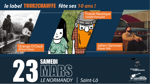 Tour2Chauffe c’est quoi ? C’est 10 ans d’activisme à soutenir des musicien(ne)s (essentiellement normands) aux prestations scéniques qui réchauffent ! L’aide apportée se situe aussi bien sur la production que sur la recherche de concerts en passant par la communication, la recherche de financement ou encore le traitement des salaires et tout ce qui est lié à la mise en avant et l’aide à la professionnalisation des artistes concernés. Afin de fêter l’anniversaire de cette structure d’accompagnement, Le Normandy propose de mettre en lumière 3 artistes atypiques et brûlants ! Au cours de cette soirée, découvrez la richesse et la spécificité de ces artistes labellisés Tour2Chauffe…” Plus d’informations -> ICI
